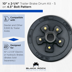 Kits de tambor de freno para remolque de 4 piezas, 5 pernos con 4 frenos eléctricos, 3500 lb, 10 x 2,25" (juego de 4 x 4)