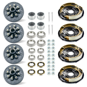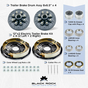 Juego de 4 tambores de freno para remolque para eje de 7000 libras, 8 espárragos con 4 kits de ensamblaje de freno de remolque eléctrico de 12" x 2"