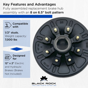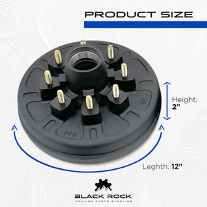 - Cubo y tambor de 12" x 2" con patrón de pernos de 8 en 6,5" para ejes de 5,2 K a 7 K