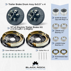 Juego de 4 kits de tambor de cubo de freno de remolque para eje de 5200 a 6000 libras - 6 espárragos con 4 frenos de remolque eléctricos de 12" x 2"