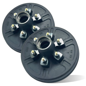 - Juego de dos cubos y tambores de 12" x 2" con patrón de pernos de 6 x 5,5" para ejes de 5200 a 6000 lb