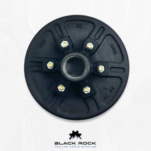 - Juego de dos conjuntos de tambor y cubo de freno con patrón de pernos de 6 x 5,5