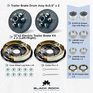 Kit de tambor de cubo de freno de remolque para eje de 5200 a 6000 libras - 6 pernos con frenos de remolque eléctricos de 7K de 12" x 2"