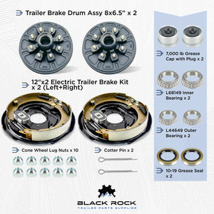 Kit de tambor de cubo de freno de remolque para eje de 7000 libras - 8 pernos con kit de ensamblaje de freno de remolque eléctrico de 12" x 2"