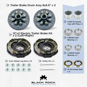 Kit de tambor de cubo de freno de remolque para eje de 7000 libras - 8 pernos con frenos de remolque eléctricos autoajustables de 12" x 2"