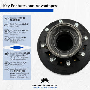 Trailer Axle Hub and Drum for 9k-10k Axle - 8 Lug, Old Style (Set of 2)